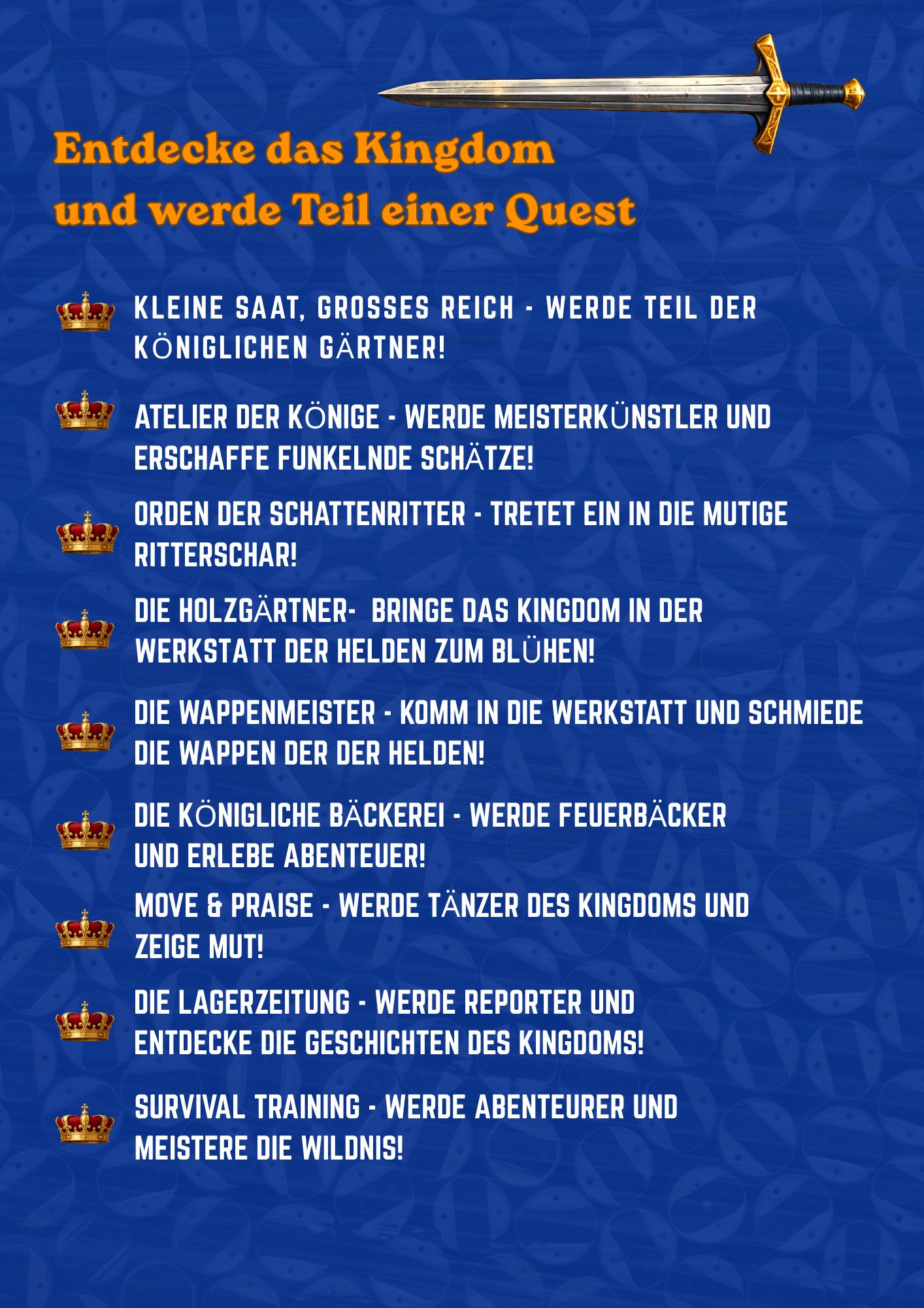 Wir suchen DICH für unsere Kingdom Quest, die vom 22.05. bis 25.05.2026 auf dem Sportplatz in Ottbergen stattfindet!